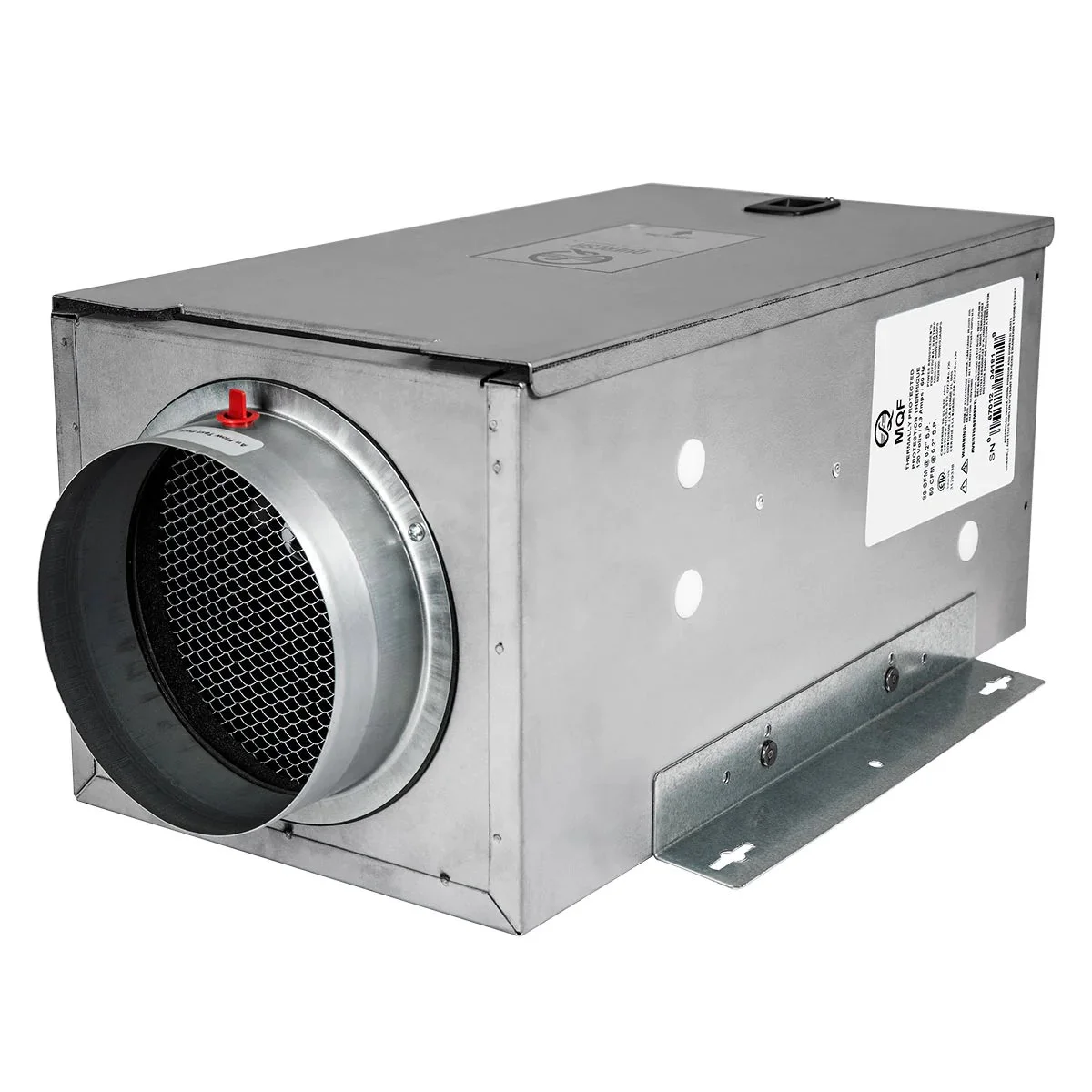 The QuFresh QuF100X Fresh Air Fan offers home builders, contractors, and developers an economic, compact and effective mechanical fresh air solution for introducing constant fresh air from outside into a home, meeting fresh air CFM requirements, "Code Compliant" ventilation standards, or "Energy Preferred" ventilation by limiting the intake of outdoor air that is too humid, too hot, too cold, or too dry. This fan is constructed with a durable galvanized steel housing, motor operated dampers, and a high efficiency ECM motor rated for continuous operation. The QuF100X inline fan unit arrives fully assembled and can be mounted in any orientation to studs or joists with the pre-installed mounting brackets, is easily wired into your existing HVAC system with the 0.5 in. electrical knockout, and includes a built-in test port for air flow measurement with a Pitot tube or similar device to ensure you've got just the right amount of airflow. The installer chooses the quantity (50, 80, or 100 CFM) of fresh air needed, adjusts the desired temperature and humidity limits and turns the unit on to begin operation. This fresh air fan can accept a 10" x 10" x 2" air filter up to MERV 16 for incoming air quality.